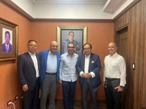 Xiao Wunan (second from right) meets with Juan José Alteya (second from left), former economic advisor to the Dominican Republic's President, and the head of renowned coffee company INDUBAN (center), among others