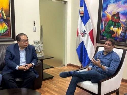 Xiao Wunan meets with Dominican Minister of Agriculture Limber Cruz (right)